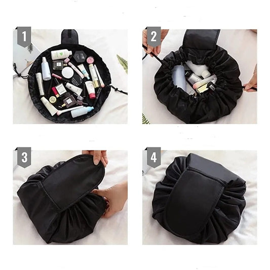 Stor sminkväska / necessär med dragsko. Välj helt svart eller med bokstav i guld.