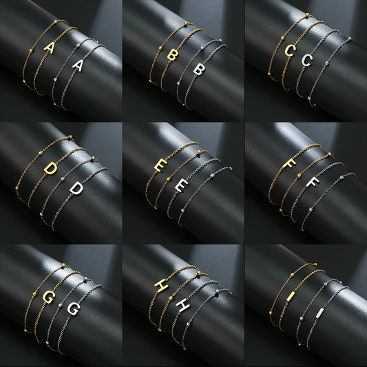 Bokstavsarmband med dubbla kedjor i guld-eller silverfärg