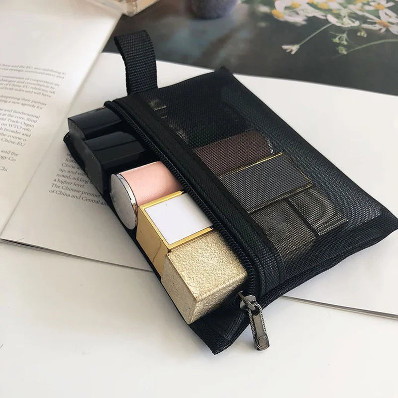 Organisera ditt smink i en necessär av meshtyg.