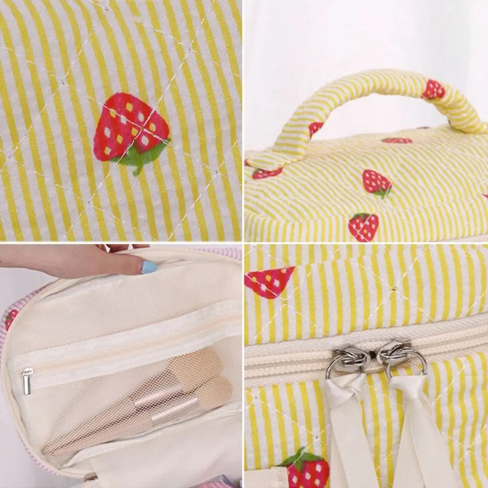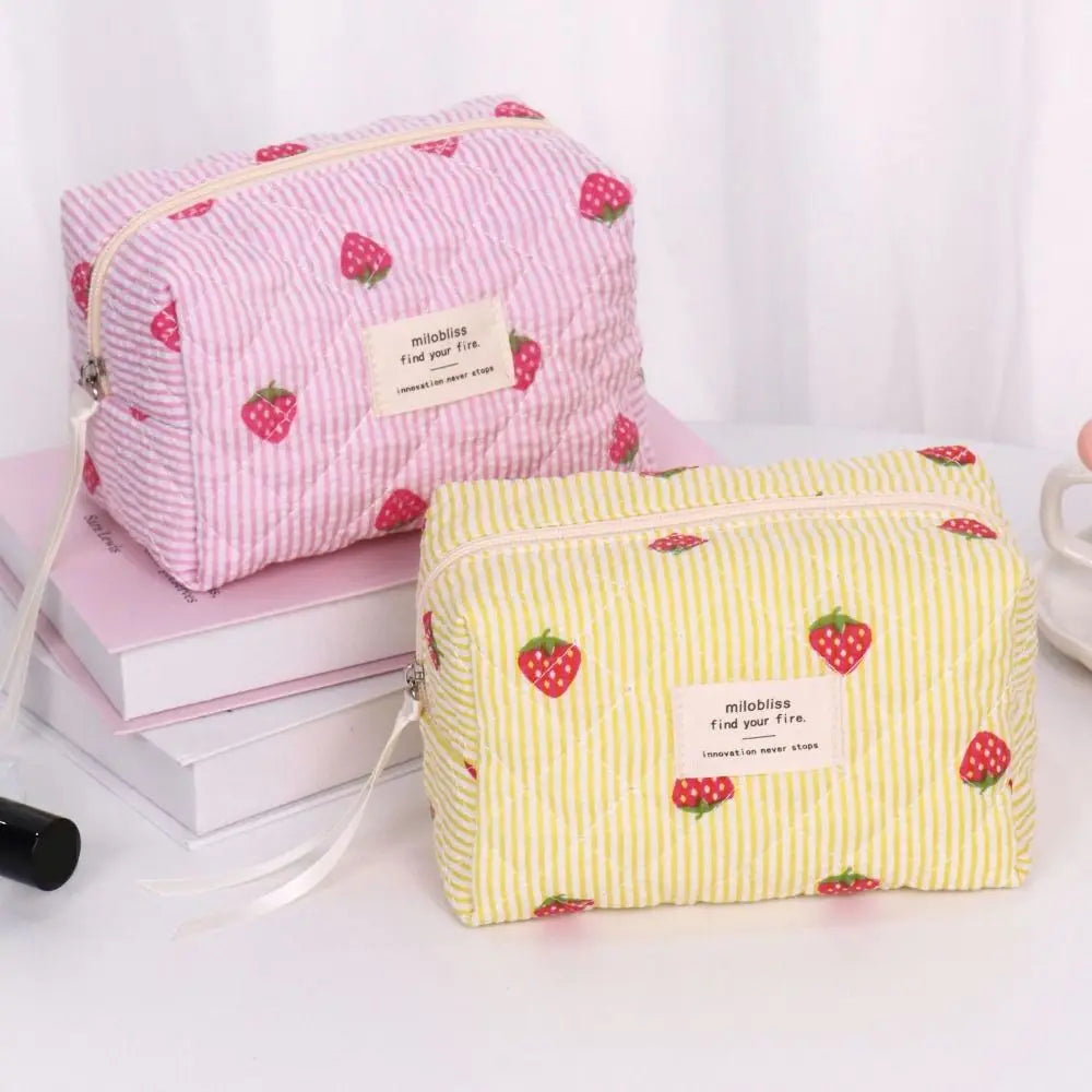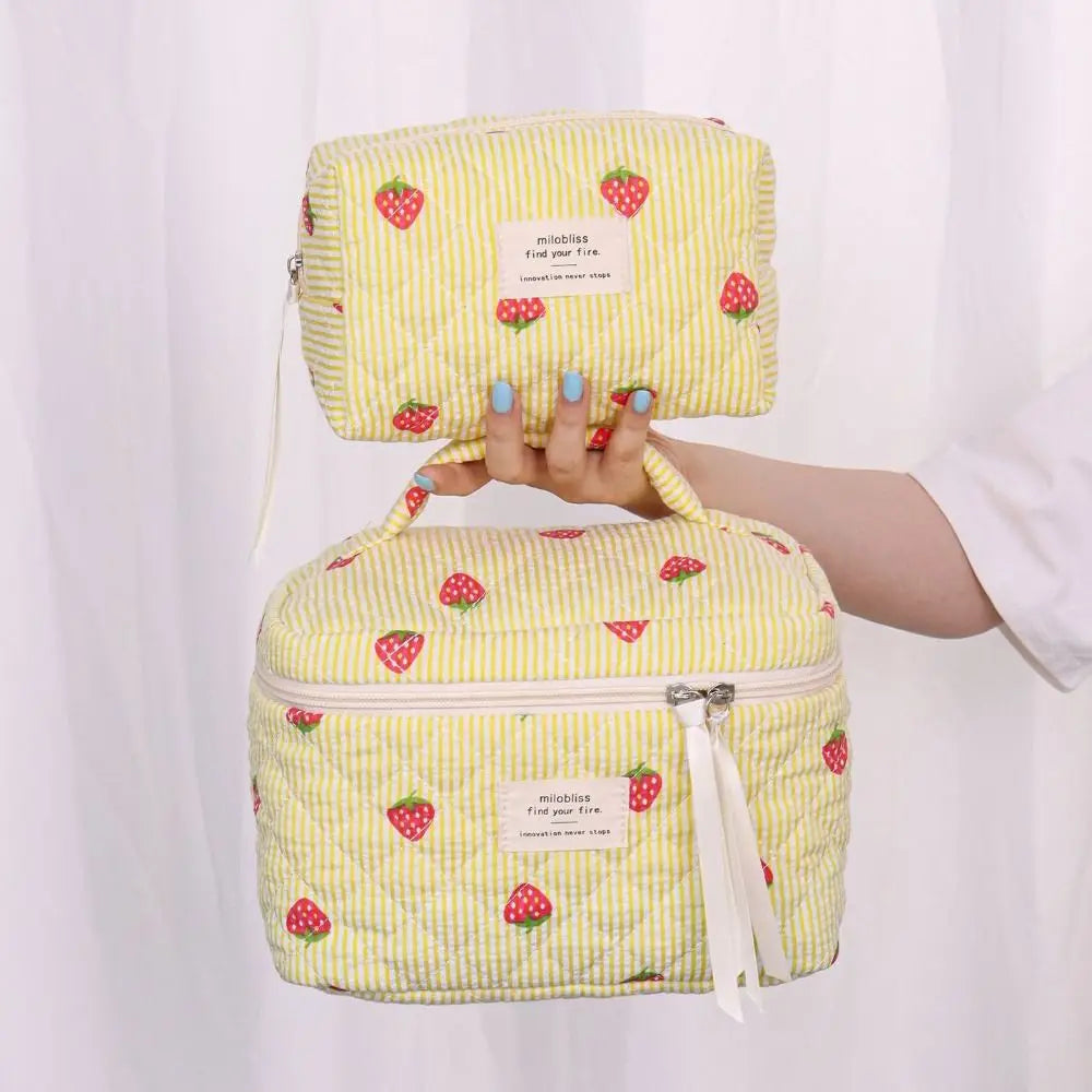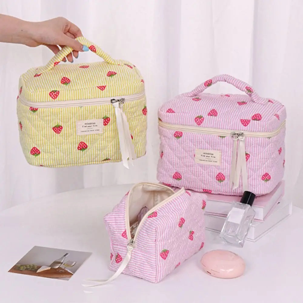 Necessärerna är perfekta till resan och kan användas både som sminkväska och som en liten strandväska för solkrämer och pengar. Oavsett om du använder din jordgubbsnecessär hemma eller på resan kommer den lysa upp din dag.
