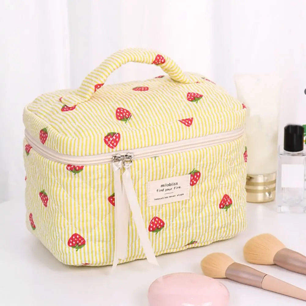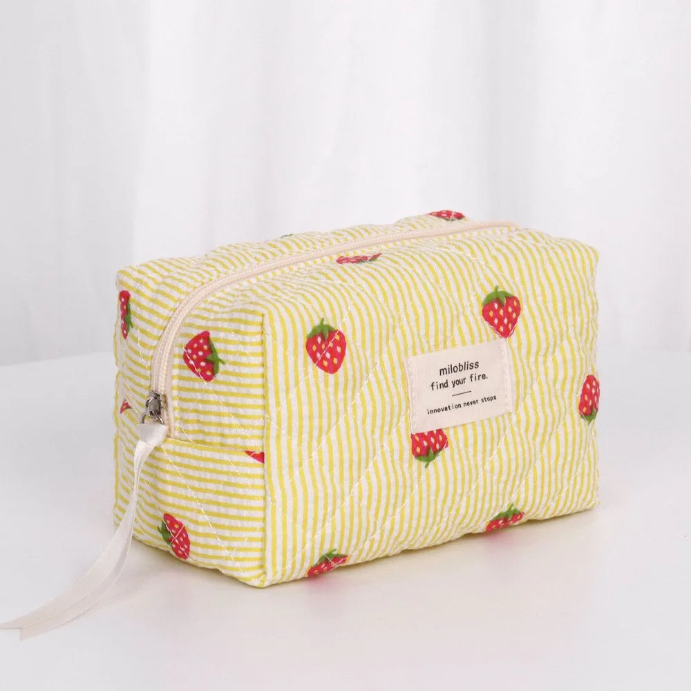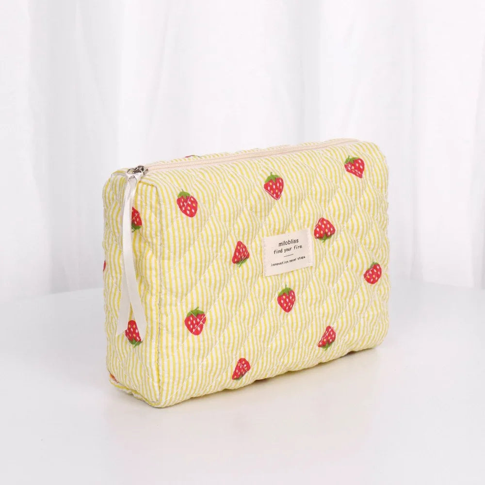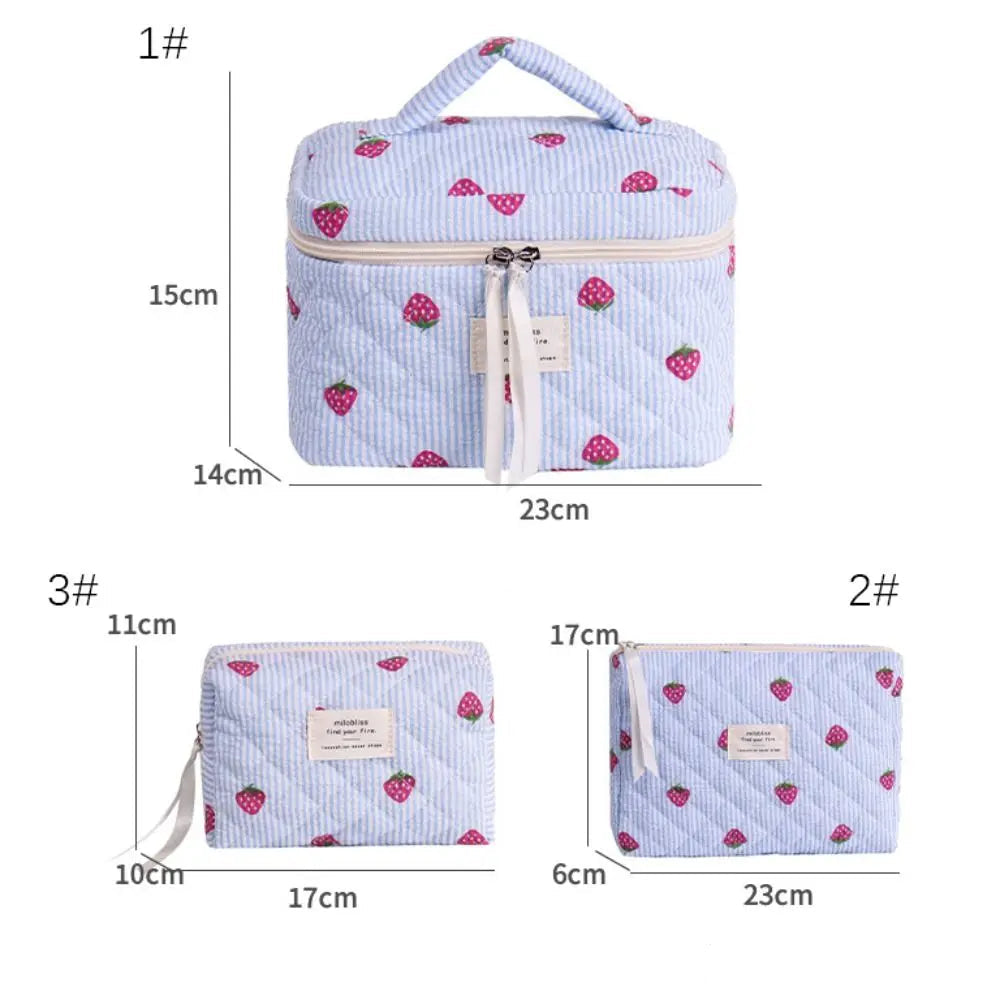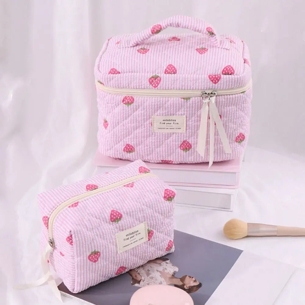 Necessärerna är perfekta till resan och kan användas både som sminkväska och som en liten strandväska för solkrämer och pengar. Oavsett om du använder din jordgubbsnecessär hemma eller på resan kommer den lysa upp din dag.