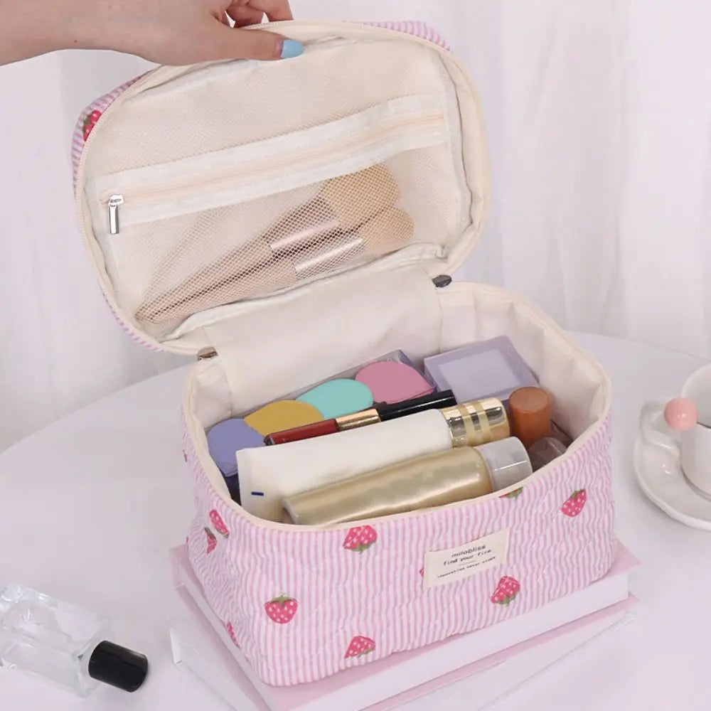 Letar du efter en necessär som är både funktionell och riktigt söt? Då är vår jordgubbsnecessär ett måste! Perfekt för smink, hudvårdsprodukter eller småprylar när du är på resande fot eller hemma.